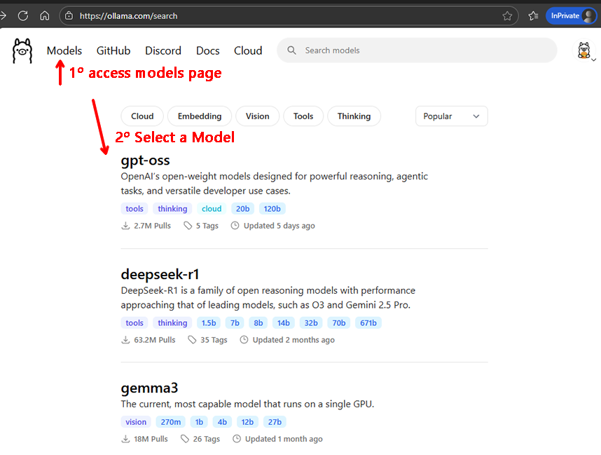 Ao enviar um prompt (pergunta), caso o modelo ainda não tenha sido baixado, o Ollama fará o download automaticamente.
