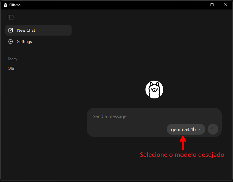 Uma ótima novidade nas versões atuais do Ollama é que ele já instala um programa com interface visual em formato de chat, o que facilita muito o seu uso. Veja: